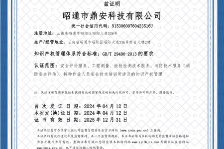 2003年11月10日,昭通市鼎安科技有限公司成立,初始主要從事第三方安全工程技術(shù)服務(wù),經(jīng)多年運(yùn)營(yíng),發(fā)展為多專業(yè)綜合科技平臺(tái),為社會(huì)提供多種專業(yè)技術(shù)服務(wù)工作。 現(xiàn)公司注冊(cè)資金為1200萬元,公司法定代表人:毛衛(wèi)旭。公司主要業(yè)務(wù):安全評(píng)價(jià)、安全標(biāo)準(zhǔn)化評(píng)審、安全工程技術(shù)服務(wù);環(huán)境監(jiān)測(cè)、職業(yè)衛(wèi)生檢測(cè)、檢驗(yàn);法律訴訟及非訴訟服務(wù);司法鑒定、固定資產(chǎn)投資項(xiàng)目節(jié)能服務(wù);工程咨詢;工程測(cè)量測(cè)繪;安全教育培訓(xùn)等。是安全生產(chǎn)服務(wù)、安全教育培訓(xùn)機(jī)構(gòu),也是環(huán)境監(jiān)測(cè)和職業(yè)衛(wèi)生服務(wù)機(jī)構(gòu),同時(shí)也是綜合的檢測(cè)檢驗(yàn)、綜合科技平臺(tái)服務(wù)機(jī)構(gòu)。多年來為公、檢、法、司、軍、警、海關(guān)、仲裁、安監(jiān)、工礦商貿(mào)企業(yè)、社會(huì)團(tuán)體及個(gè)人提供多專業(yè)技術(shù)服務(wù)。